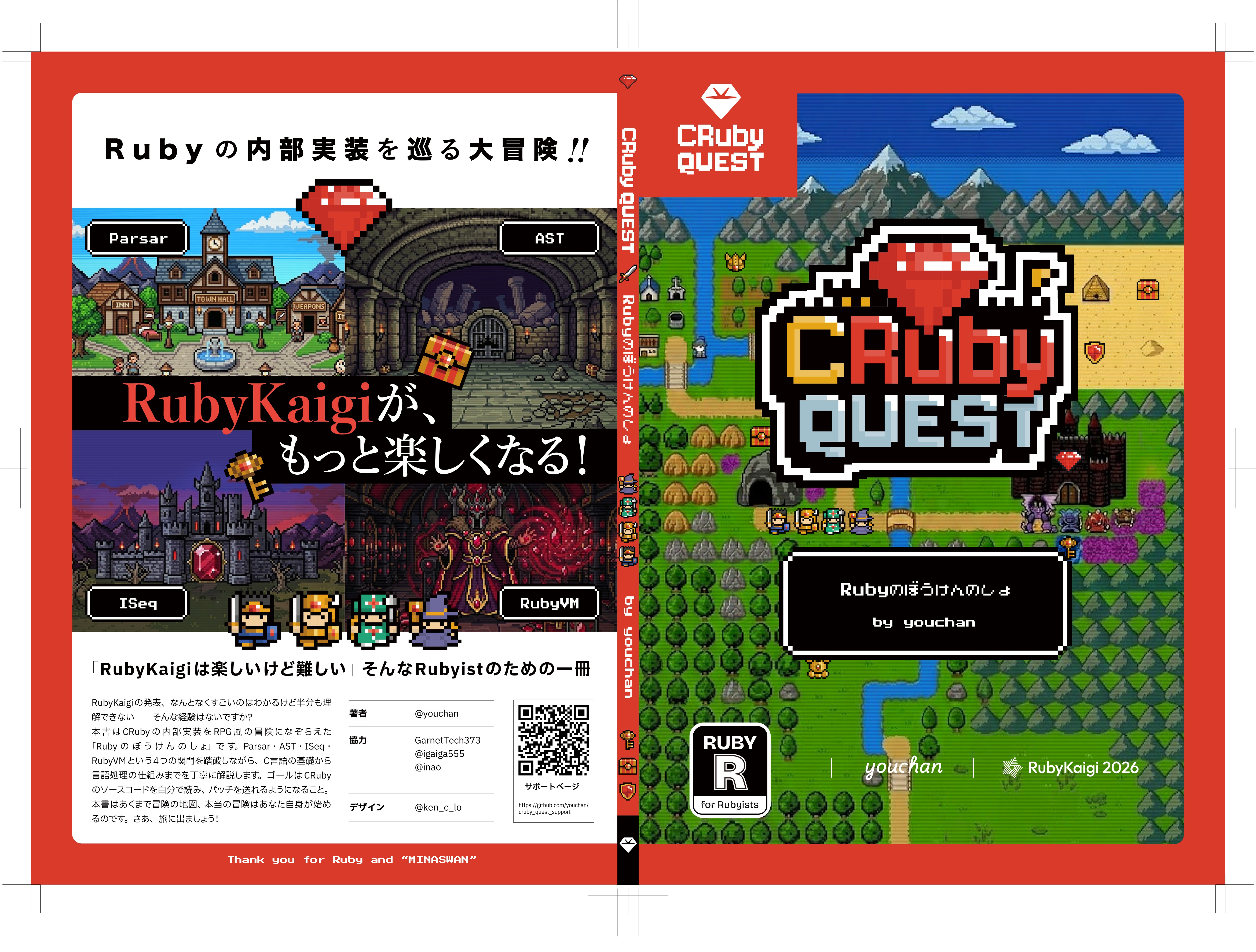 igaigaさんが代表を務めるガーネットテック373株式会社が運営するRuby技術書執筆助成金の支援を受けて「CRuby quest ~ Rubyのぼうけんのしょ ~」という同人誌を書きました。